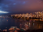 Podobno na Sylwestra fajerwerki w Vancouver są jako by ich nie było. Na 1 lipca, Dzień Kanady, jest już lepiej, ale najlepsze są z okazji Celebration of Light. To coś w rodzaju święta połączonego z międzynarodowymi zawodami pirotechników - nie wiemy na ile jest to święto lokalne a na ile chińskie, w każdym razie jest sponsorowane przez bank z Hong Kongu. Fajerwerki były puszczane przez kilka dni, ale my wybraliśmy się tylko jednego dnia. Cała impreza odbywała się w English Bay, fajerwerki były fajne, niestety przechytrzyliśmy się, bo oglądaliśmy je z mostu - z góry, wysoko, ale okazało się że bokiem, więc zamiast wyszukanych kształtów widzieliśmy tylko ich namiastki. Jak na poważną imprezę przystało, pozamykali część ulic, puścili dodatkowe autobusy, tak było swojsko jak się nie zmieściliśmy do dwóch B-98 :)